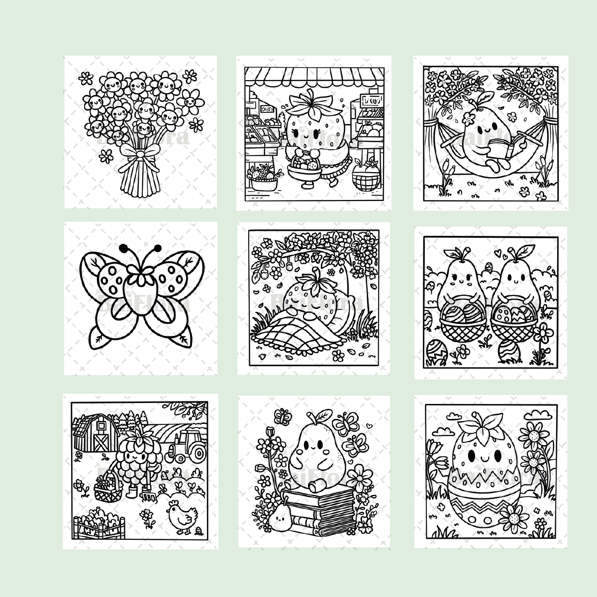 Plonge dans un univers doux et enchanteur avec BaiFlora, un carnet de 25 coloriages célébrant la beauté du printemps et la magie de Pâques!
